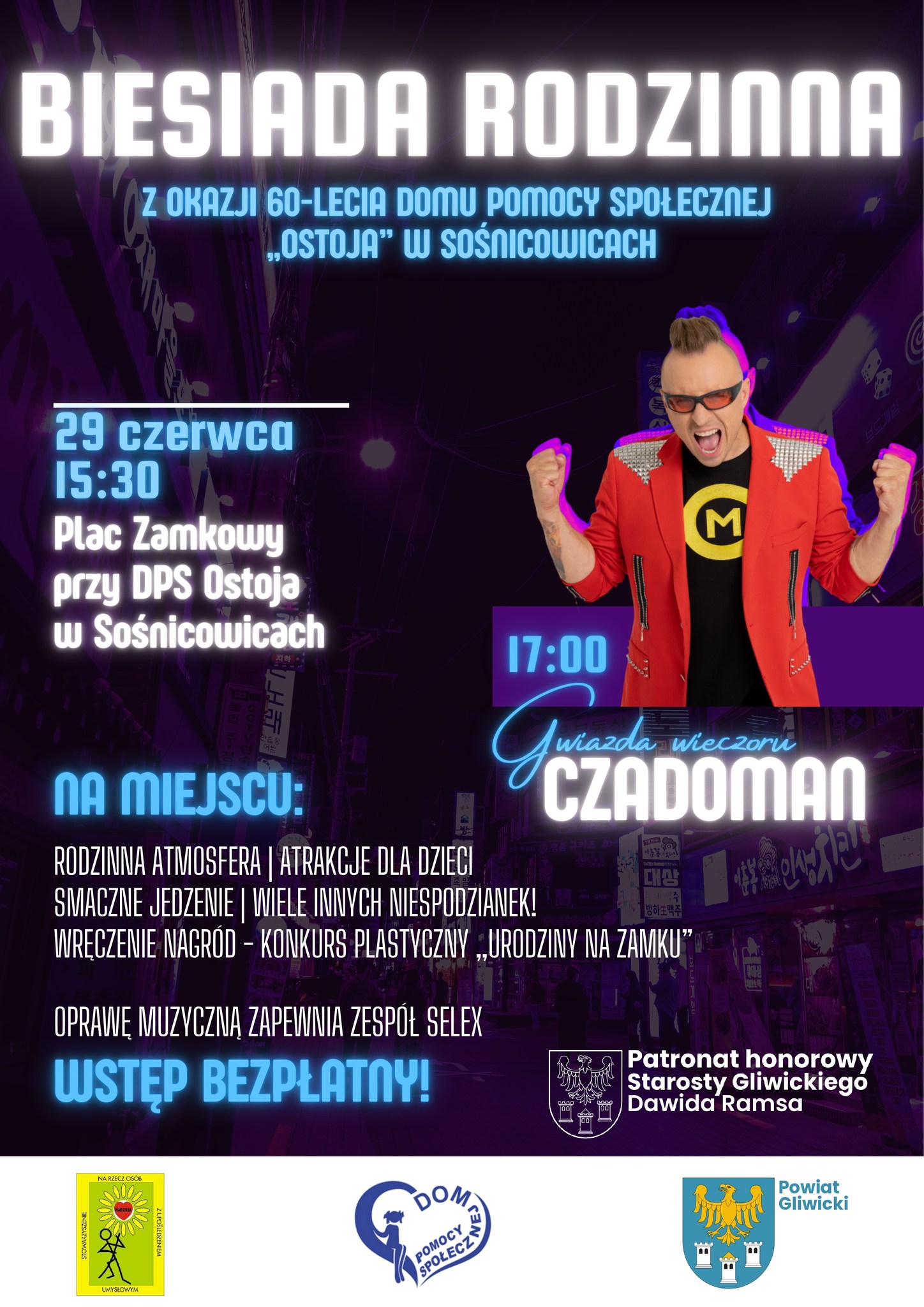 Już 29 czerwca o 15:30 zapraszamy wszystkich zainteresowanych na Biesiadę Rodzinną, która odbędzie się na Placu Zamkowym przy DPS Ostoja w Sośnicowicach.