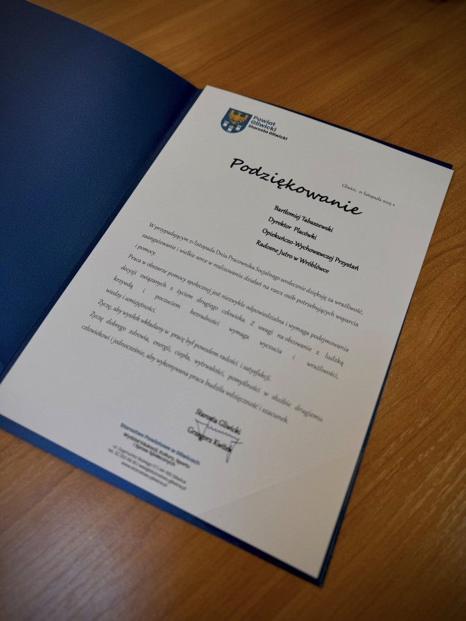 Dzień Pracownika Socjalnego był okazją docenienia osób pracujących w obszarze pieczy zastępczej, pomocy społecznej i pomocy osobom z niepełnosprawnościami, a także do spotkania Starosty Gliwickiego z dyrektorami i kierownikami domów pomocy społecznej, ośrodka wsparcia, warsztatów terapii zajęciowej, powiatowego centrum pomocy rodzinie oraz placówek opiekuńczo-wychowawczych.