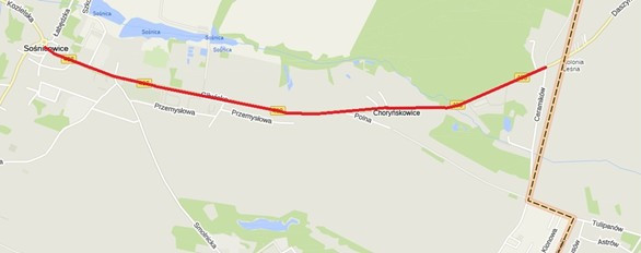 na odcinku od miejscowości Gliwice do granicy województwa”.