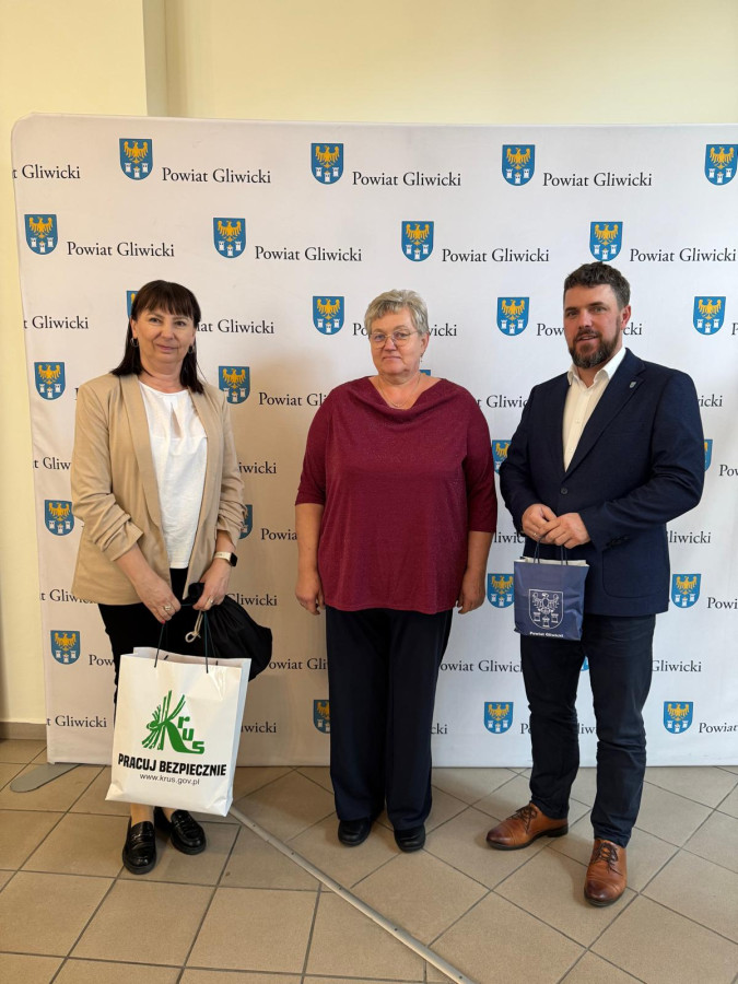 Nagrodę wręczył Leszek Żogała – Sekretarz Powiatu Gliwickiego oraz Pani Regina Kowalska reprezentująca Kasa Rolniczego Ubezpieczenia Społecznego w Gliwicach.