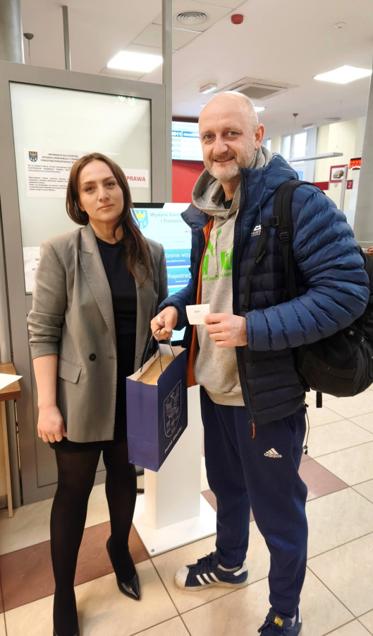 I wiecie co ? Zamiast pecha był pamiątkowy powiatowy upominek, który wręczyła mieszkańcowi naczelnik wydziału Dagmara Nocuń.