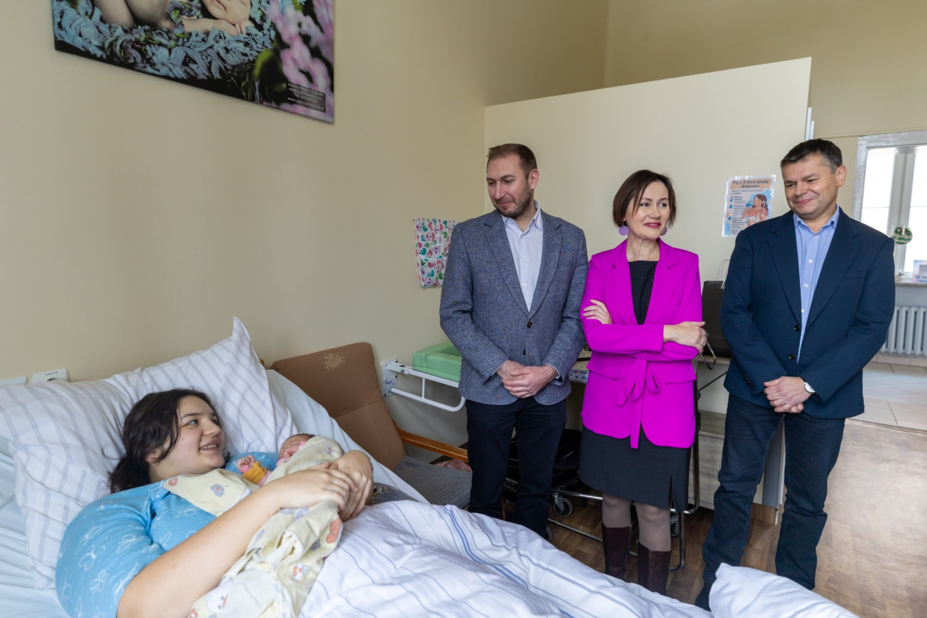 Z tej wyjątkowej okazji z prezentem powitalnym oraz serdecznymi życzeniami zdrowia i szczęścia do Rozalii i jej rodziców przybyli: Paweł Bryła – Członek Zarządu Powiatu Gliwickiego, Patrycja Fiegler – Przewodnicząca Komisji Zdrowia Rady Powiatu Gliwickiego oraz Tomasz Broda – Prezes Zespołu Szpitali Powiatu Gliwickiego.