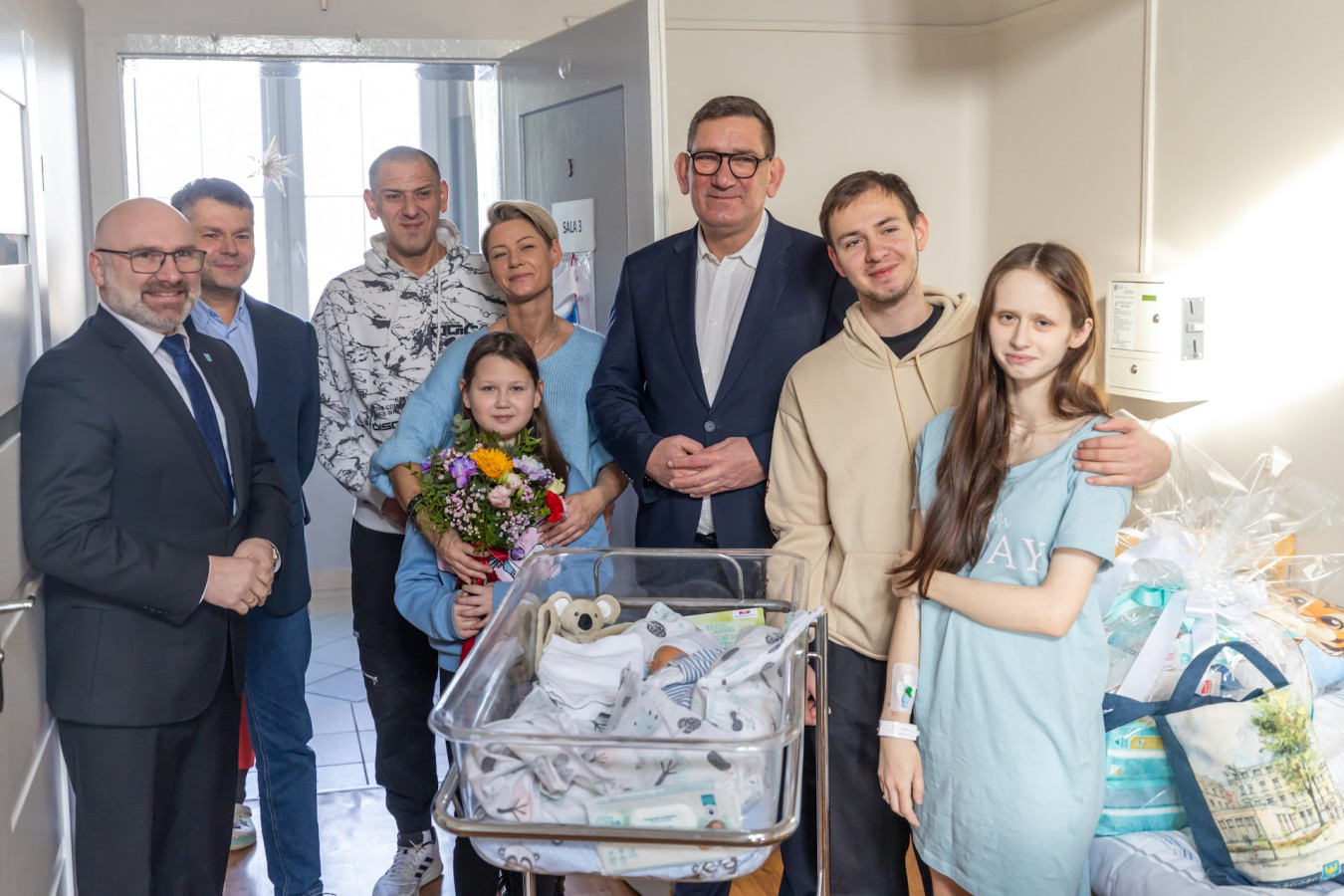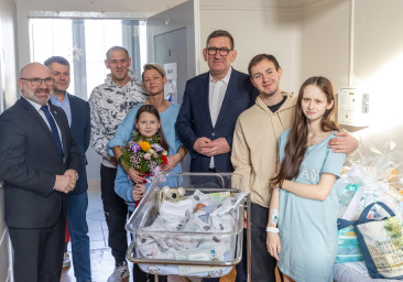 Z tej okazji szczęśliwych Rodziców i Dziadków odwiedził Grzegorz Kwitek – Starosta Gliwicki, Tomasz Rzepa – Prezydent Knurowa oraz Tomasz Broda – Prezes Zespołu Szpitali Powiatu Gliwickiego. Goście przekazali Rodzinie najlepsze życzenia oraz wręczyli okolicznościowe prezenty.