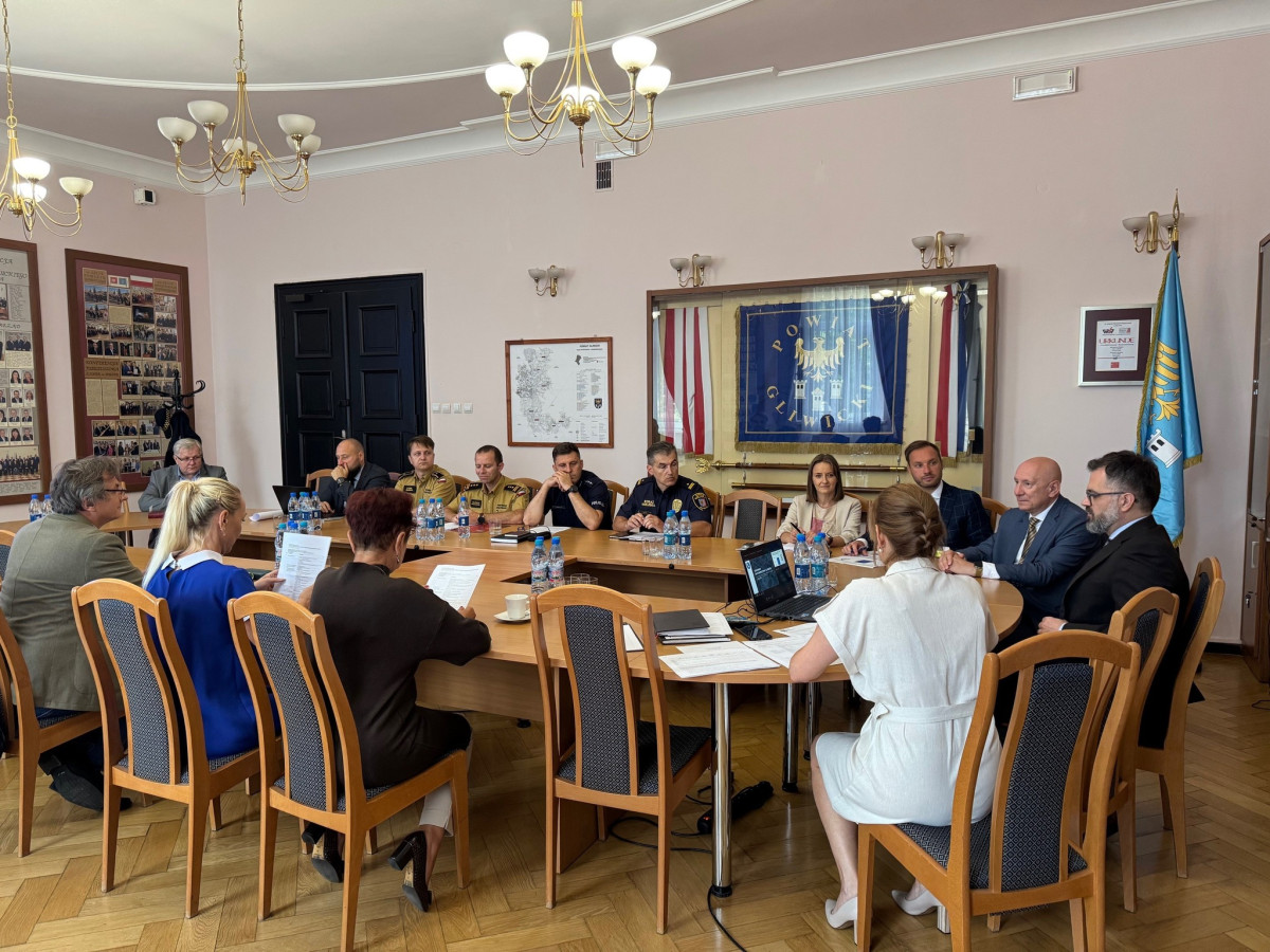 Dziś w Starostwie odbyło się posiedzenie Komisji Bezpieczeństwa i Porządku wspólnej dla Miasta Gliwice i powiatu gliwickiego. Posiedzeniu przewodniczył Dawid Rams Starosta Gliwicki wraz z Piotrem Popielem Sekretarzem Miasta Gliwice. W posiedzeniu wzięli udział przedstawiciele służb i inspekcji powiatowych i miejskich. W Komisji z ramienia Powiatu Gliwickiego uczestniczyła Ewa Jurczyga Przewodnicząca Rady Powiatu Gliwickiego oraz Izabela Czupryna Naczelnik Wydziału Zarządzania Kryzysowego. Podczas posiedzenia podsumowano funkcjonowanie i działalność służb, inspekcji, straży oraz powiatowych centrów zarządzania kryzysowego w I półroczu 2025r. Omówiona została również aktualna sytuacja na Kłodnicy, Kanale Gliwickim i Dzierżnie Dużym w związku z zagrożeniem spowodowanym zakwitem Prymnesium parvum (złotej algi). Ponadto podczas Komisji poruszono zagadnienia związane z wdrażaniem ustawy o ochronie ludności i obrony cywilnej oraz realizacji programu ochrony ludności i obrony cywilnej na lata 2025-2026.