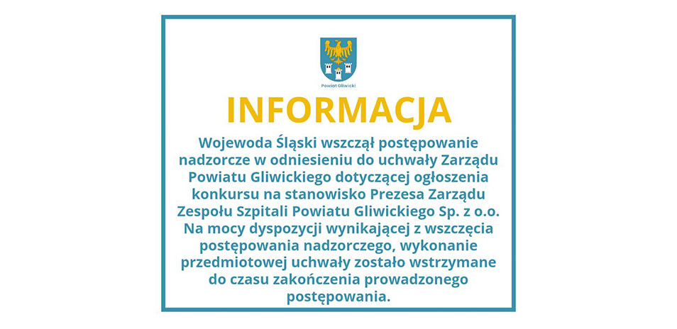 Postępowanie nadzorcze w odniesieniu do uchwały Zarządu Powiatu Gliwickiego dotyczące ogłoszenia konkursu na stanowisko Prezesa Zarządu Zespołu Szpitali Powiatu Gliwickiego Sp. z o.o.