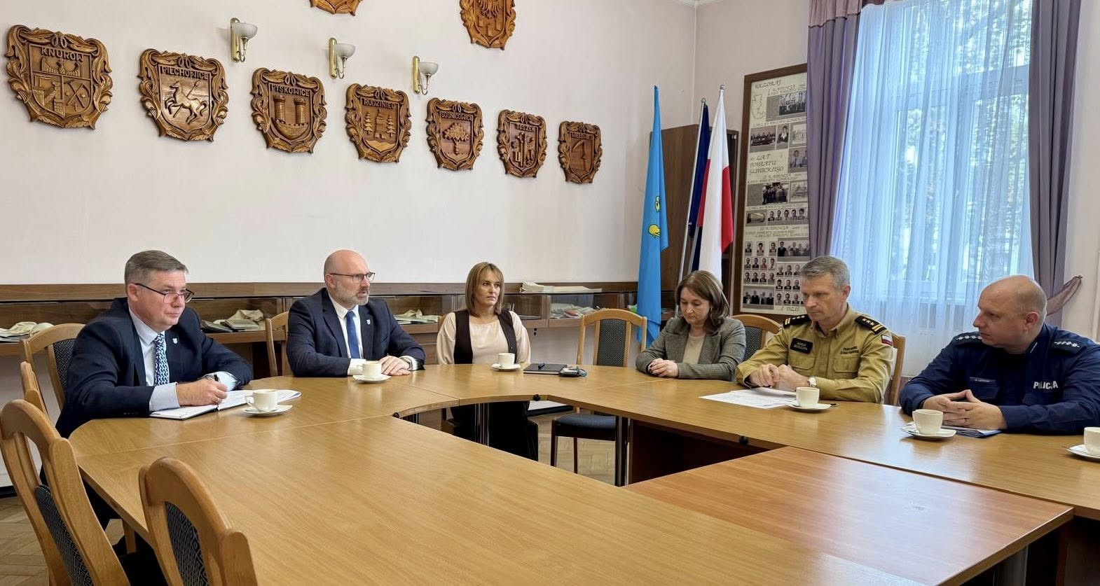 Dziś w Starostwie Powiatowym w Gliwicach Zarząd Powiatu Gliwickiego spotkał się ze służbami, których rejon działania obejmuje powiat gliwicki. W spotkaniu uczestniczyli: Prokurator Rejonowa Prokuratury Rejonowej Gliwice – Zachód, Powiatowa Inspektor Sanitarna w Gliwicach, Nadleśniczy Nadleśnictwa Rudziniec, Szef Wojskowego Centrum Rekrutacji w Gliwicach oraz komendanci: Komendy Miejskiej Policji w Gliwicach, Komisariatu Policji w Knurowie , Komisariatu Policji w Pyskowicach, Komendy Miejskiej Państwowej Straży Pożarnej w Gliwicach. Podczas spotkania omówiono bieżące działania realizowane przez służby oraz współpracę pomiędzy tymi służbami a samorządem powiatowym.