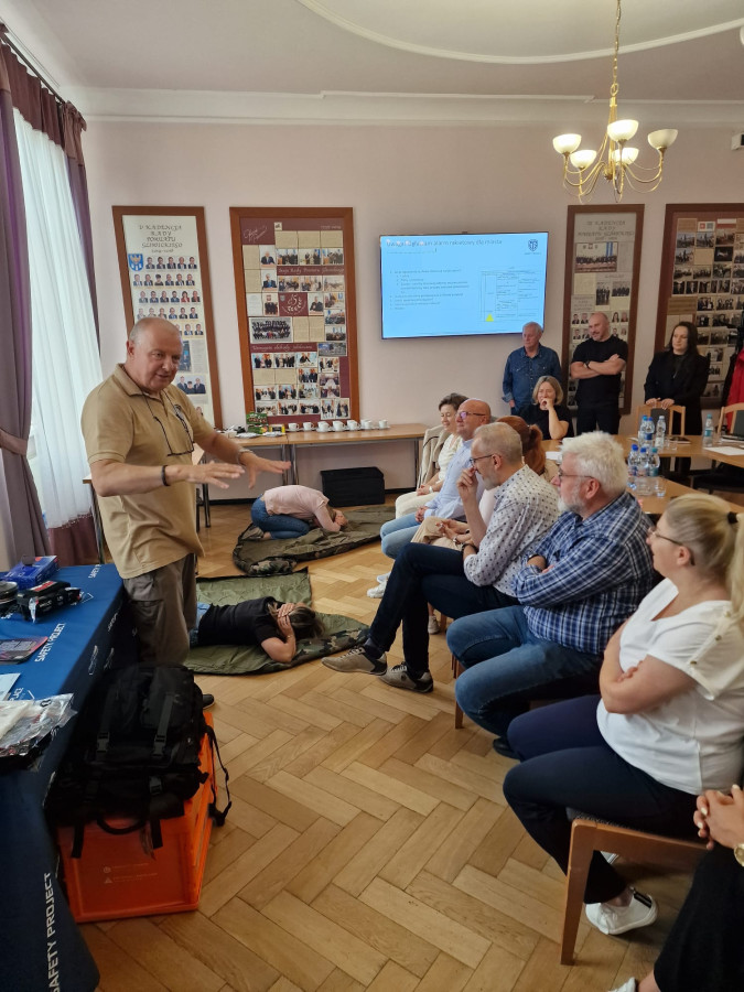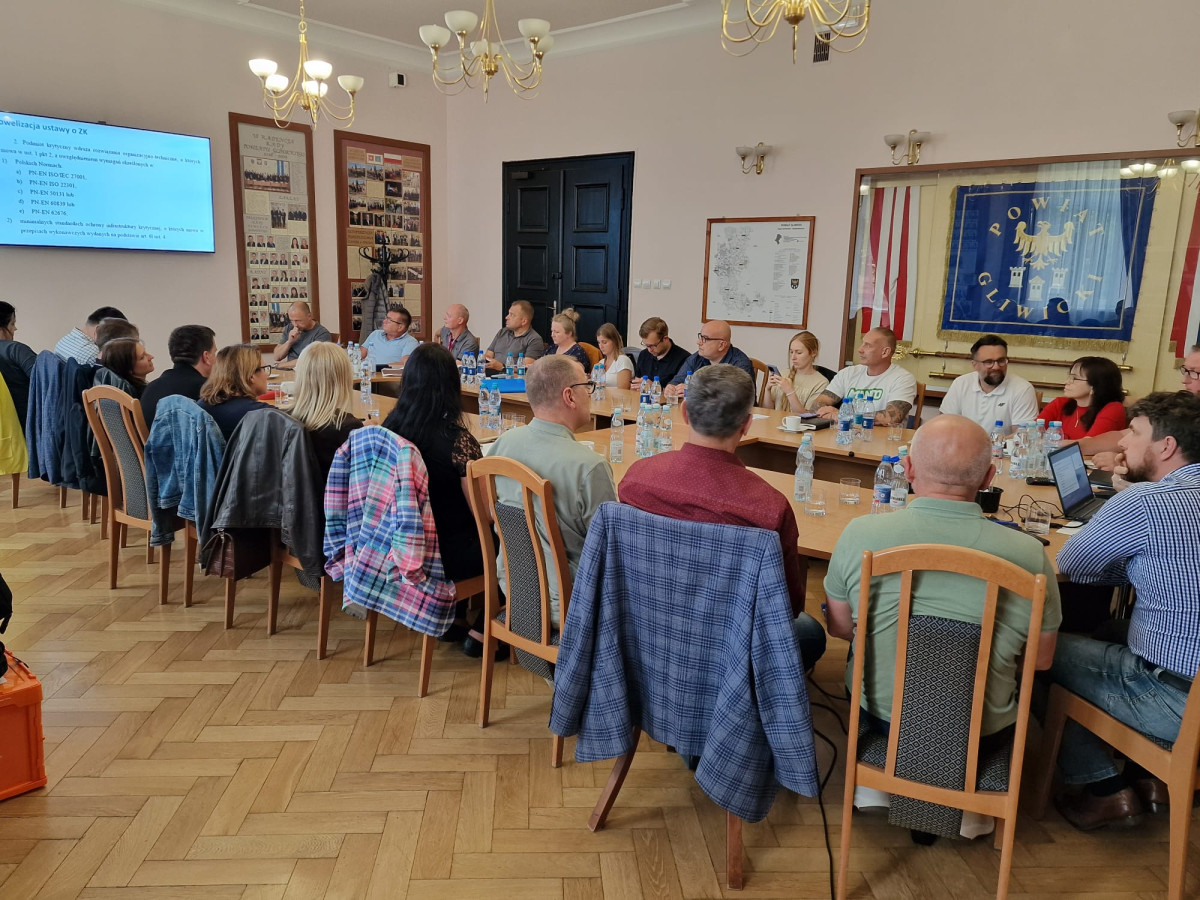 W dniach 7-10 lipca 2025 roku zgodnie z inicjatywy Starosty Gliwickiego w siedzibie naszego Starostwa zostało zrealizowane pierwsze szkolenie z obszaru Ochrony Ludności i Obrony Cywilnej, dedykowane dla kadry urzędniczej Starostwa Powiatowego w Gliwicach oraz urzędów Gmin: Gierałtowice, Knurów, Pilchowice, Sośnicowice, Rudziniec, Wielowieś, Toszek i Pyskowice, które stanowią i należą do naszych struktur samorządu terytorialnego. Nasi urzędnicy w kolejnych czterech dniach szkolili się w zakresie nowych przepisów dotyczących ochrony ludności i obrony cywilnej. Firma Safety Project z Wrocławia zaproponowała zajęcia łącząc teorię z praktyką. Uczestnicy na bieżąco sprawdzali swoją wiedzę i umiejętności ze szczególnym uwzględnieniem zachowania i postępowania w sytuacjach zagrożenia. Jak teoria wygląda w praktyce pokazała mł. insp. w st. sp mgr Jacek Gałuszka. Ekspert w obszarze zarządzania kryzysowego, dowodzenia akcjami i operacjami policyjnymi oraz bezpieczeństwa imprez masowych. Jak przekazał nam prowadzący zajęcia trener z firmy Safety Projecy czeka nas dużo nowych zadań jakie stoją przed wszystkimi samorządami w związku z wejściem w życie przepisów nowej ustawy. Oczywiście w naszych urzędzie wiele z tych procedur jest już opracowanych i funkcjonują. W trakcie trwania szkolenia zwołano Powiatowy Zespół Zarzadzania Kryzysowego, w związku z zapowiedziami zmiennych i bardzo niekorzystnych warunków pogodowych (intensywne i ciągłe opady deszczu spowodowane niżem genueńskim) również i o tym rozmawialiśmy w czasie realizowanych zajęć. Mając na uwadze wdrażanie ustawy o ochronie ludności i obronie cywilnej, Starosta Gliwicki Dawid Rams podjął bardzo ważną decyzję o konieczności przeprowadzenia w jak najkrótszym czasie szkolenia dla kadry urzędniczej Starostwa. Inicjatywę organizacji wspólnego przedsięwzięcia poparli wszyscy włodarze miast i gmin z terenu powiatu.