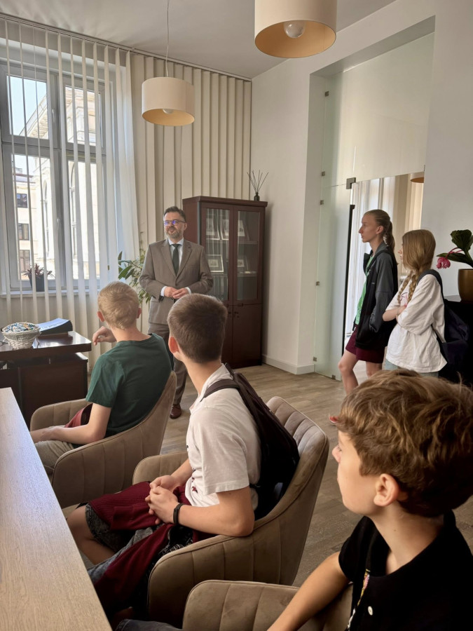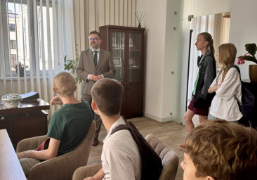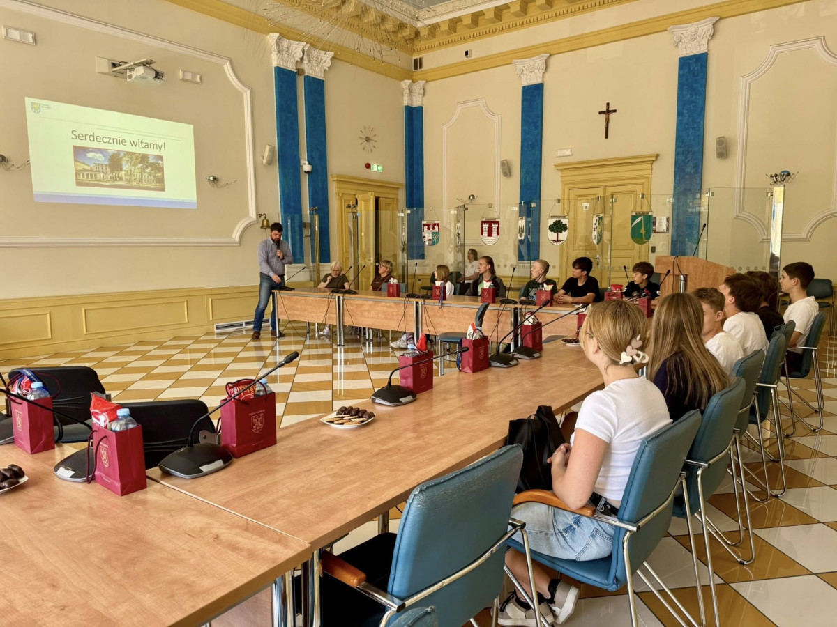 Dzisiaj w Starostwie Powiatowym w Gliwicach gościliśmy ósmoklasistów ze Szkoły Podstawowej nr 7 w Knurowie, którzy mieli okazję przyjrzeć się z bliska pracy urzędników. Uczniów przywitał Starosta Dawid Rams, a krótkie wprowadzenie na temat Starostwa oraz Powiatu przedstawił Sekretarz Leszek Żogała.