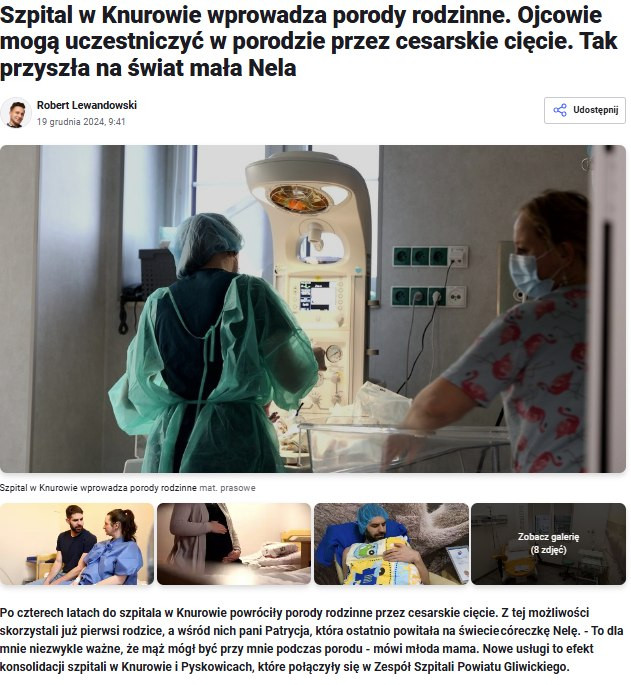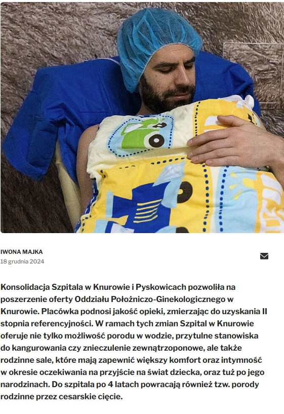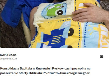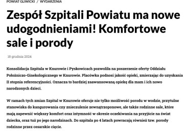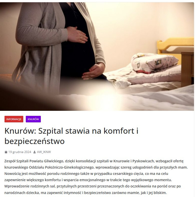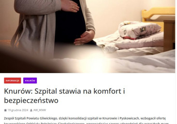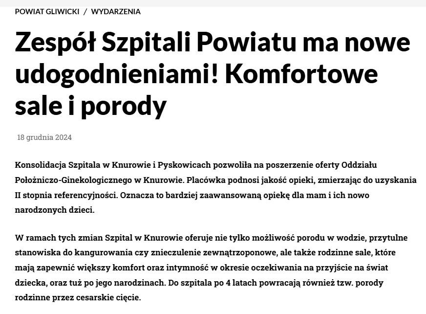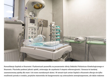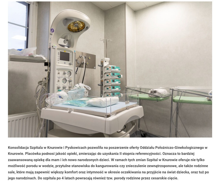 Zmiany, które zachodzą w naszym szpitalu, to efekt konsolidacji Szpitala w Knurowie i Pyskowicach, dzięki czemu szpital poszerzył ofertę knurowskiego Oddziału Położniczo-Ginekologicznego.