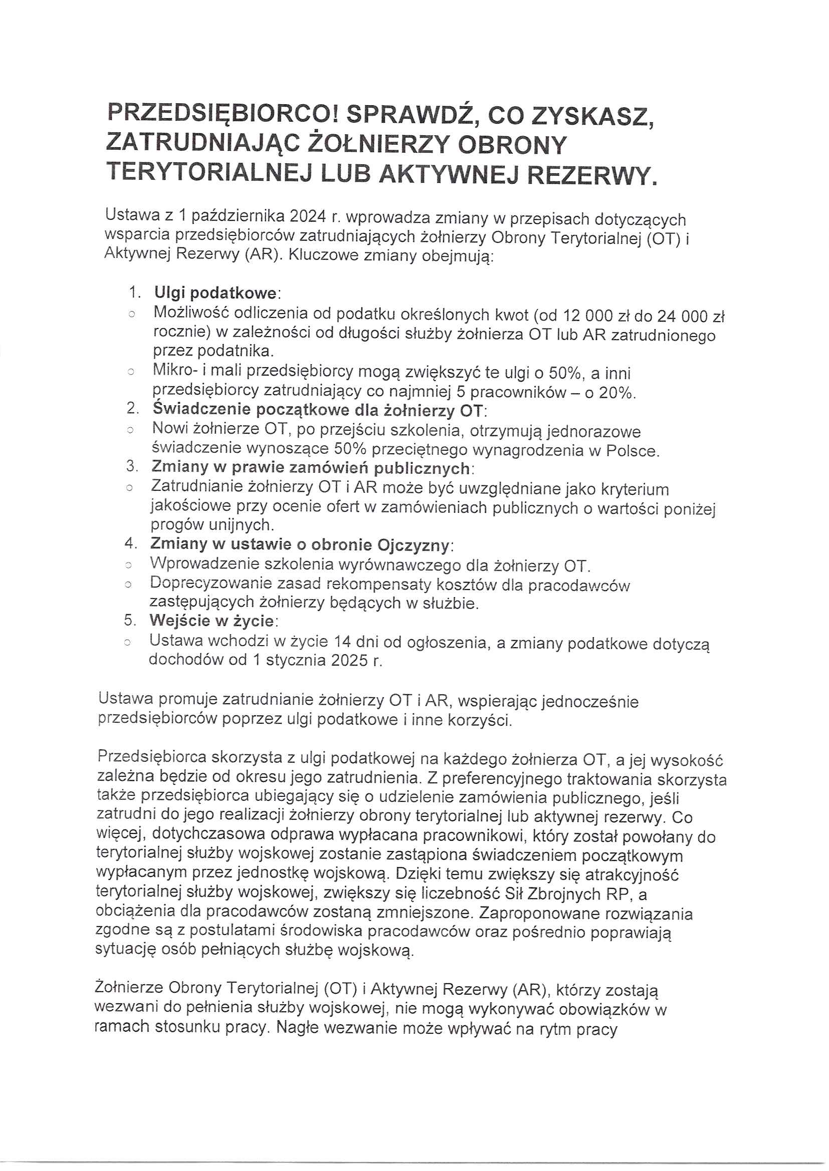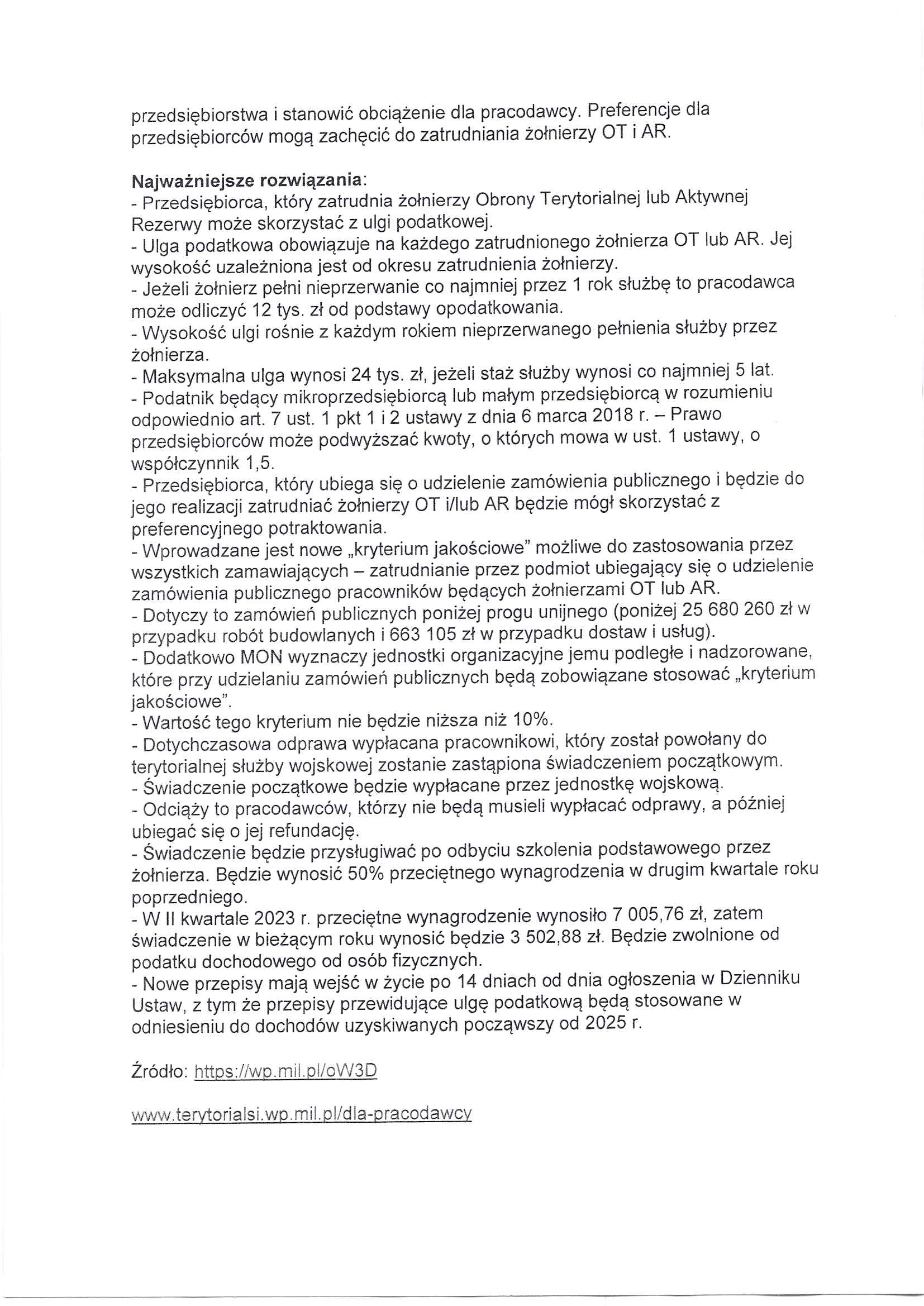Korzyści dla pracodwaców, zatrudniających żołnierzy Aktywnej Rezerwy oraz Wojsk Obrony Terytorialnej