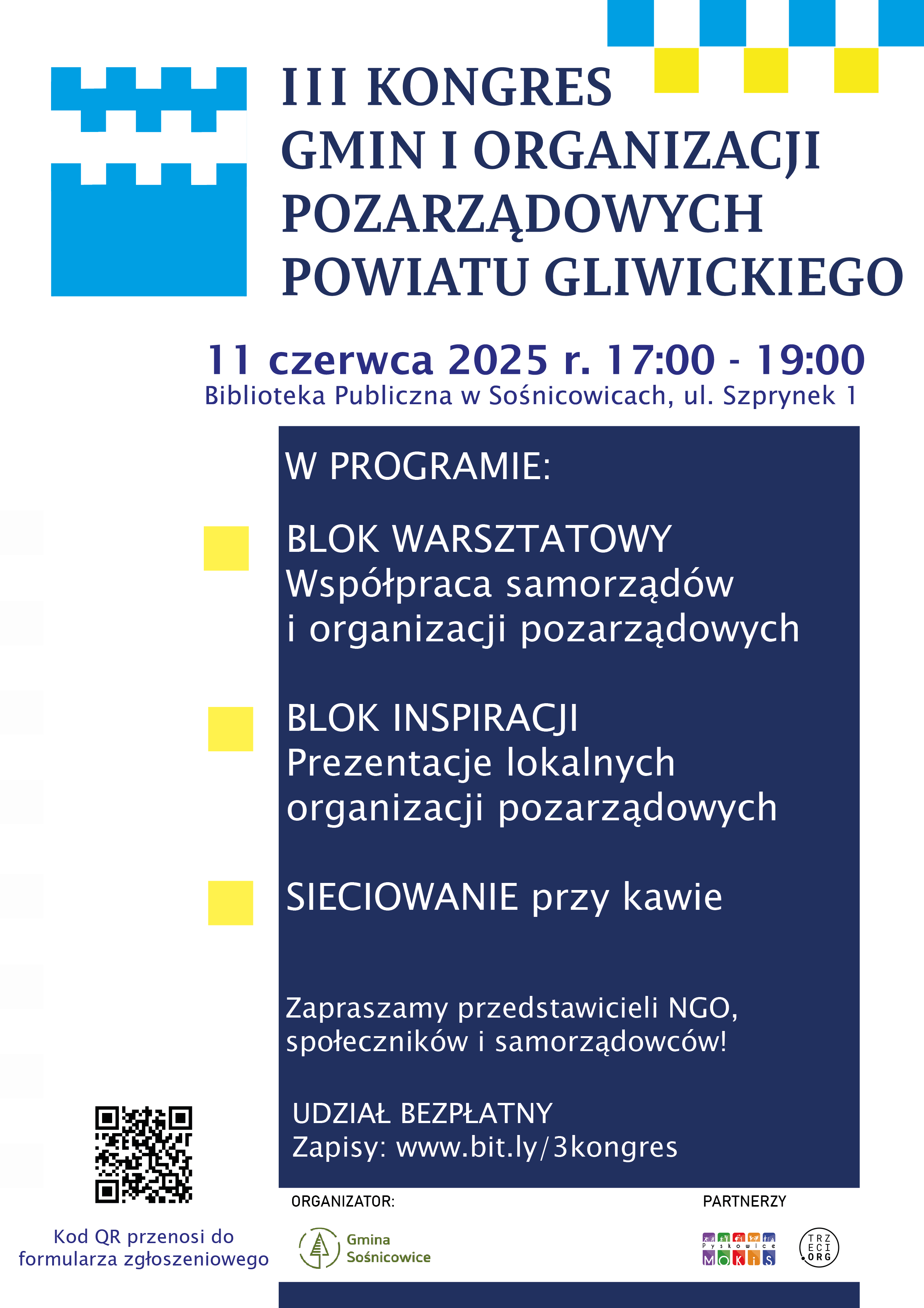III Kongres Gmin i Organizacji Pozarządowych Powiatu Gliwickiego – 11 czerwca 2025 r., godz. 17:00 – 19:00, Biblioteka Publiczna w Sośnicowicach